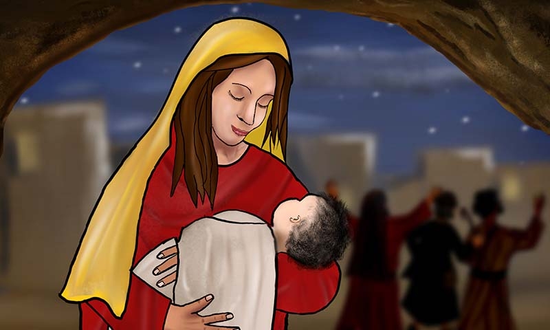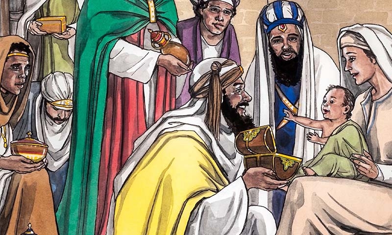 Увидев же звезду, они возрадовались радостью весьма великою, и, войдя в дом, увидели Младенца с Мариею, Матерью Его, и, пав, поклонились Ему; и, открыв сокровища свои, принесли Ему дары: золото, ладан и смирну.